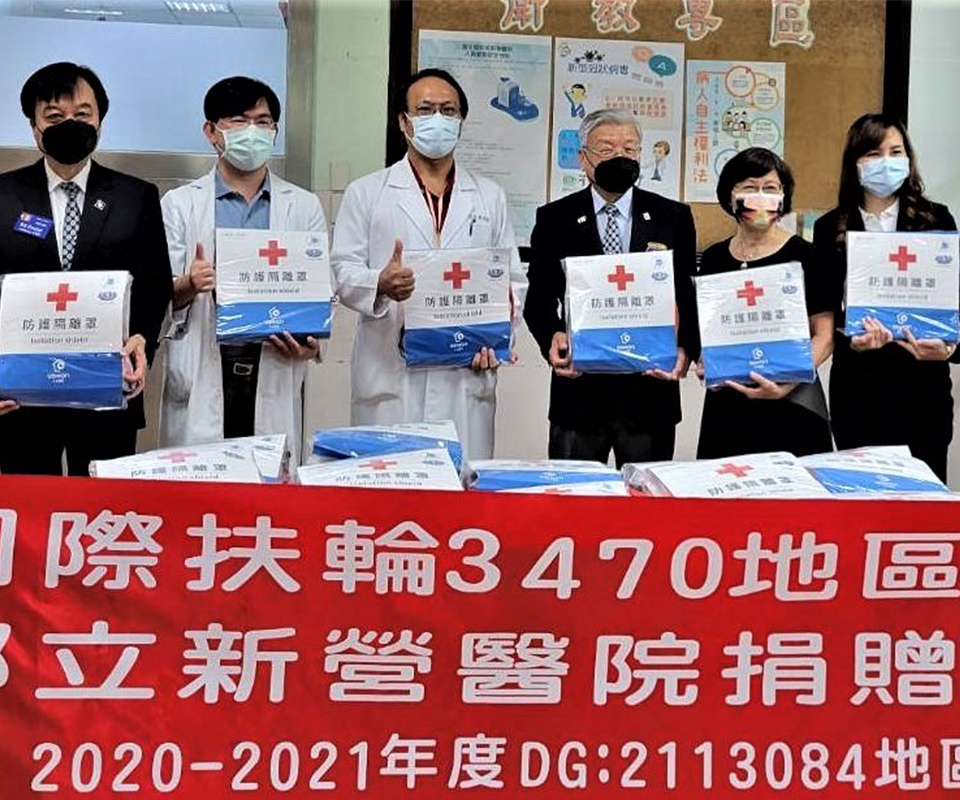 國際扶輪3510地區總監邱崑、助理總監王素娥、國際扶輪3470地區總監陳清鏗與地區秘書長莊和達,以及高雄中正扶輪社、屏東中正扶輪社、真愛16-17社秘聯誼會、邱慧吟、林昆翰等人,日前共同捐贈300組防護隔離罩給新營醫院。